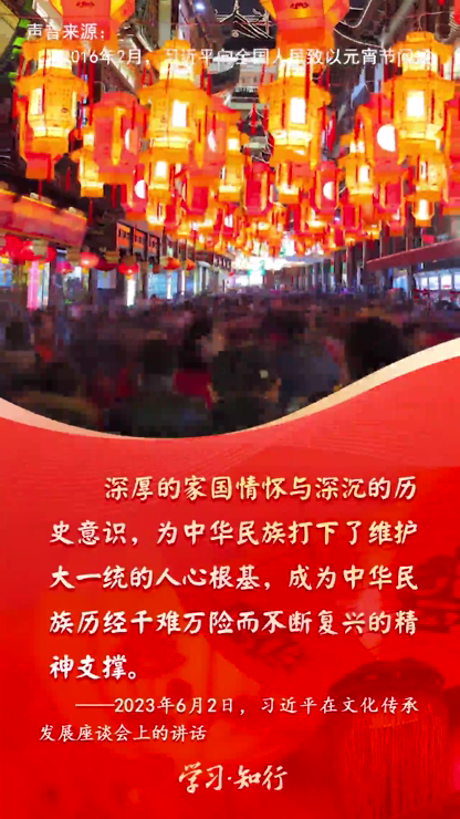 元宵佳節(jié)既是萬(wàn)家團(tuán)圓的日子,也是愛(ài)國(guó)愛(ài)家同頻、家國(guó)情懷共融的時(shí)刻。習(xí)近平總書(shū)記多次闡述家庭與社會(huì)、家庭與國(guó)家之間的關(guān)系。從總書(shū)記的溫暖話(huà)語(yǔ)中,一起感受至真至誠(chéng)的家國(guó)情懷。