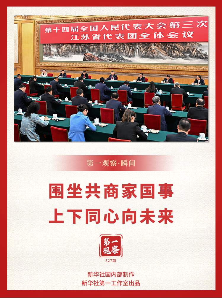 人民大會堂東大廳燈光璀璨,暖意融融?;刈中蔚臅h桌旁,代表們踴躍發(fā)言,總書記用心傾聽。