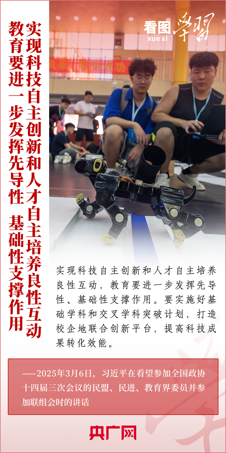 “建設(shè)教育強(qiáng)國(guó)、科技強(qiáng)國(guó)、人才強(qiáng)國(guó),是全黨全社會(huì)的共同責(zé)任?!?月6日,習(xí)近平總書(shū)記在看望參加全國(guó)政協(xié)十四屆三次會(huì)議的民盟、民進(jìn)、教育界委員并參加聯(lián)組會(huì)時(shí)發(fā)表重要講話。總書(shū)記就做好教育、科技、人才工作作出深刻闡釋,強(qiáng)調(diào)必須深刻把握中國(guó)式現(xiàn)代化對(duì)教育、科技、人才的需求,強(qiáng)化教育對(duì)科技和人才的支撐作用,進(jìn)一步形成人才輩出、人盡其才、才盡其用的生動(dòng)局面。一起來(lái)學(xué)習(xí)!