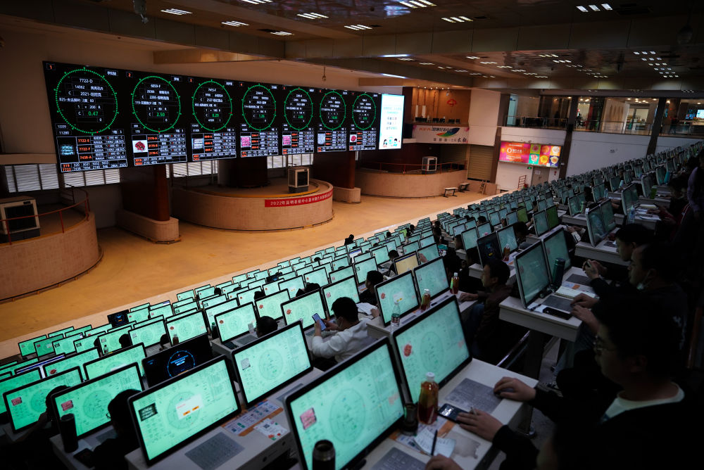 2022年11月11日,花商在云南省昆明市國(guó)際花卉拍賣(mài)交易中心參加鮮花競(jìng)拍。