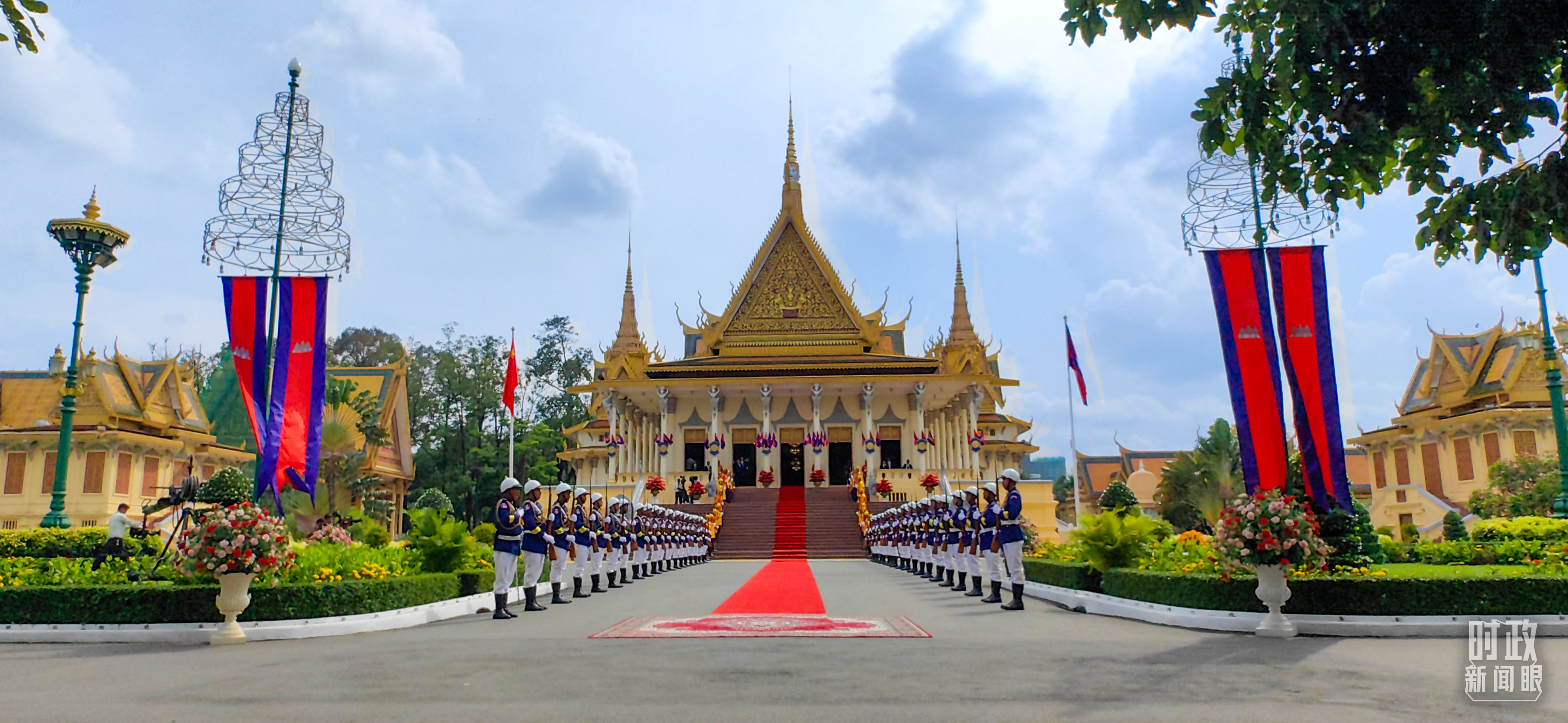 金邊王宮,習(xí)主席同西哈莫尼國(guó)王、莫尼列太后的會(huì)見(jiàn)在這里舉行。(總臺(tái)央視記者劉琦拍攝)