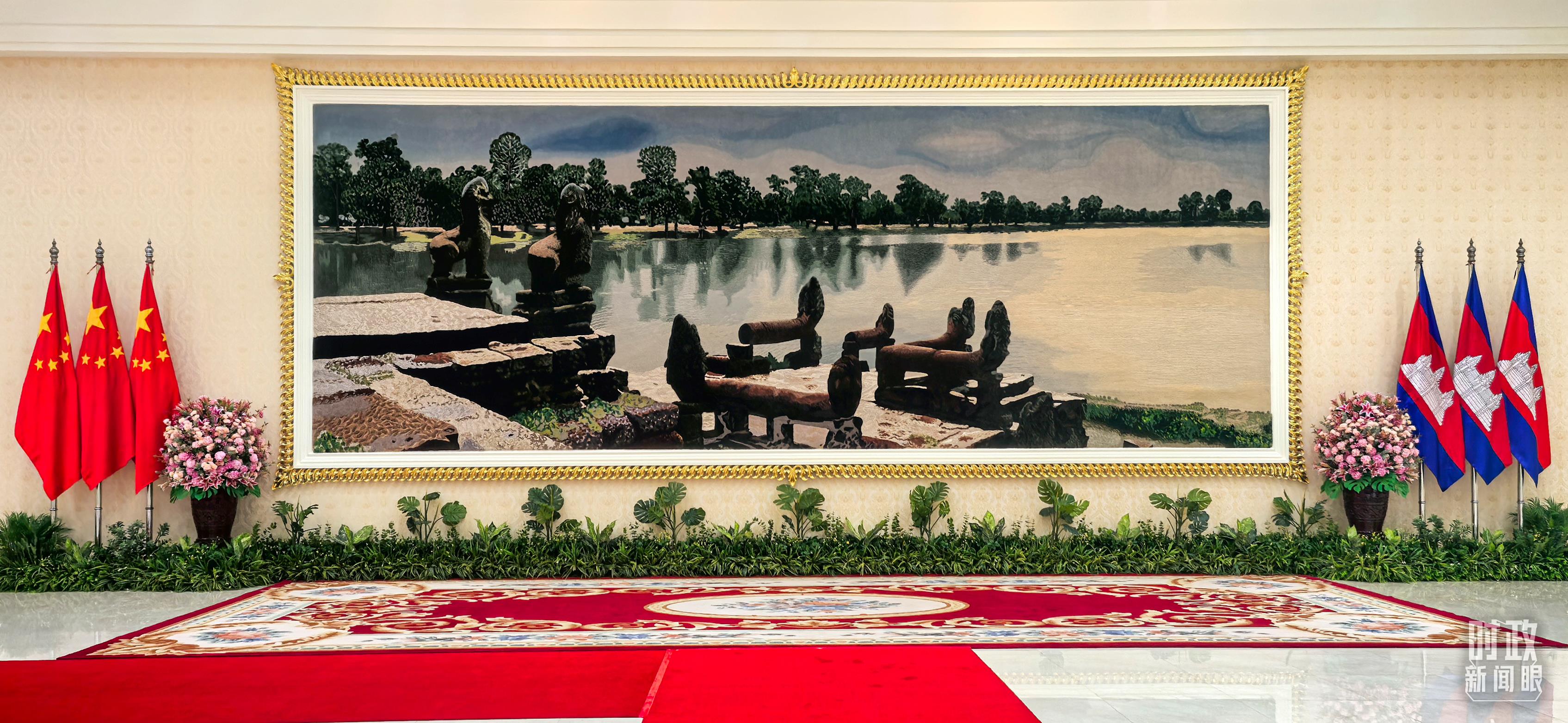習(xí)主席會(huì)見(jiàn)洪森前的合影現(xiàn)場(chǎng)。(總臺(tái)央視記者范凱拍攝)
