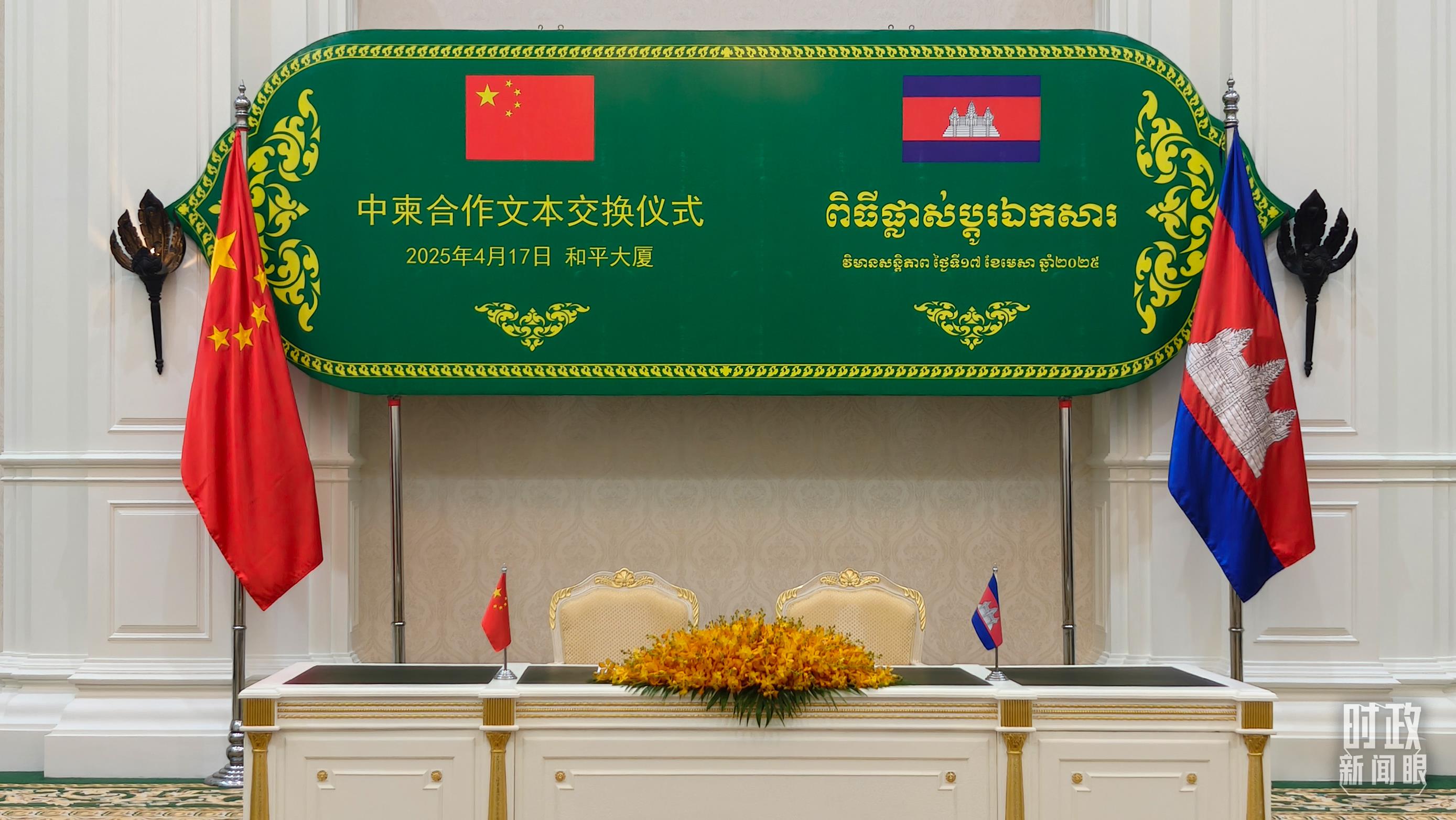 中柬合作文本交換儀式現(xiàn)場(chǎng)。(總臺(tái)央視記者楊立峰拍攝)