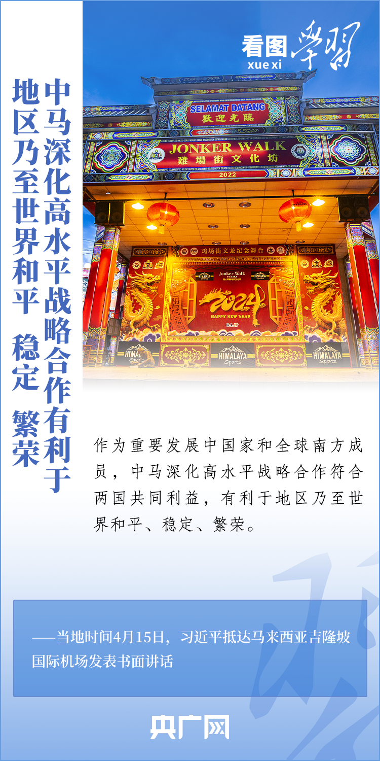 “中國(guó)和馬來(lái)西亞是好鄰居、好朋友、好伙伴,常來(lái)常往、親如一家?!?月15日至17日,國(guó)家主席習(xí)近平應(yīng)邀對(duì)馬來(lái)西亞進(jìn)行國(guó)事訪問(wèn)。訪問(wèn)期間,習(xí)主席高度評(píng)價(jià)中馬關(guān)系,就共同打造高水平戰(zhàn)略性中馬命運(yùn)共同體,譜寫(xiě)睦鄰友好、團(tuán)結(jié)合作新篇章,開(kāi)啟中馬關(guān)系新的“黃金50年”擘畫(huà)藍(lán)圖和愿景。一起來(lái)學(xué)習(xí)!