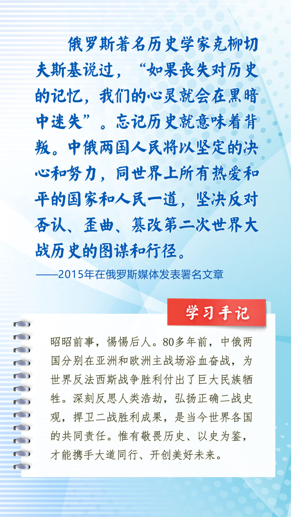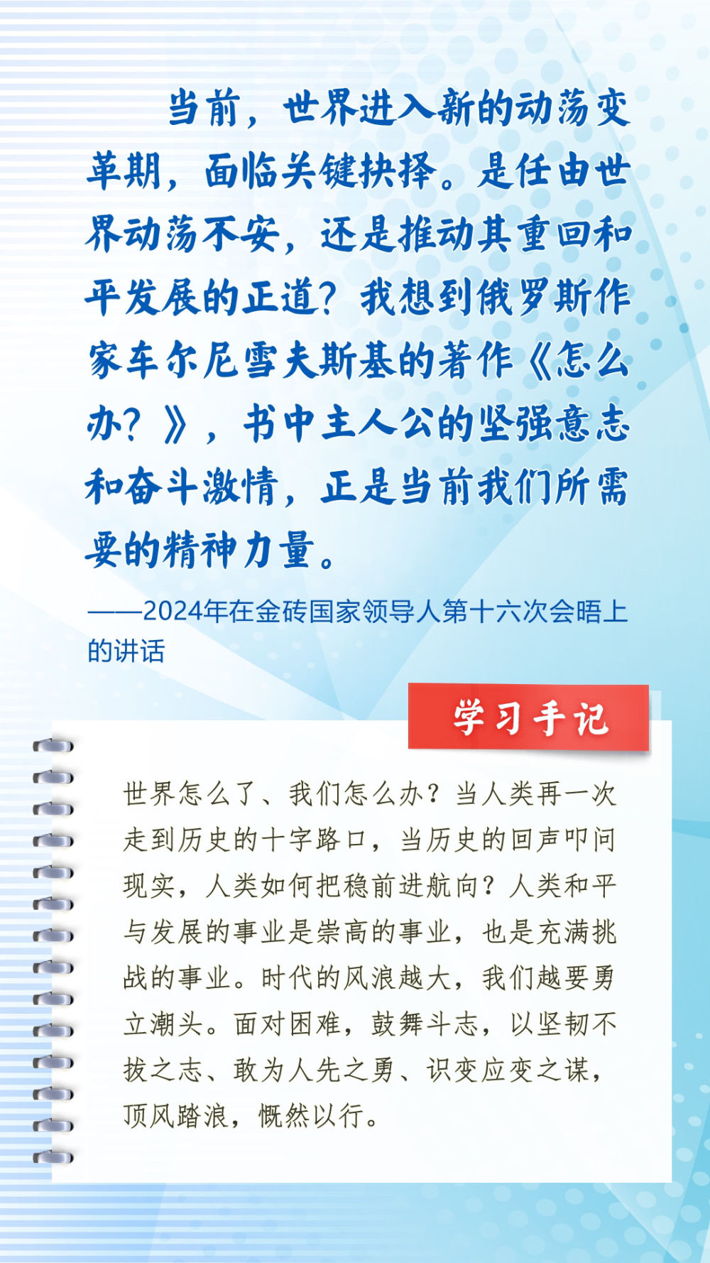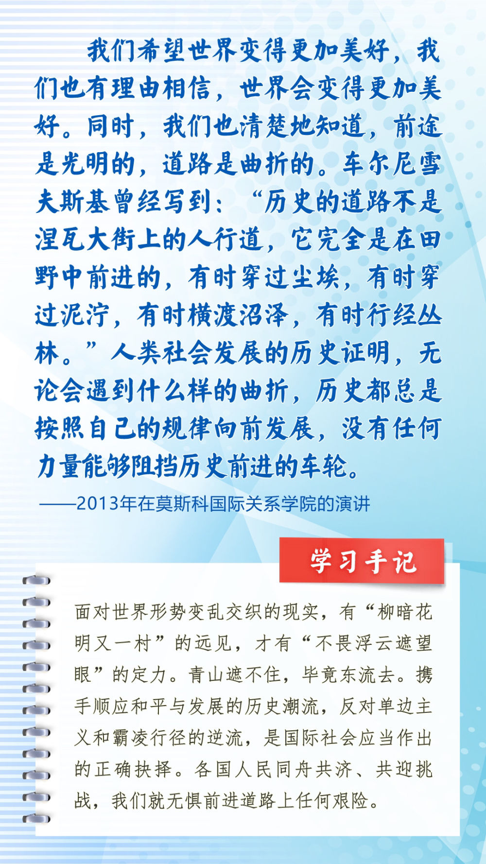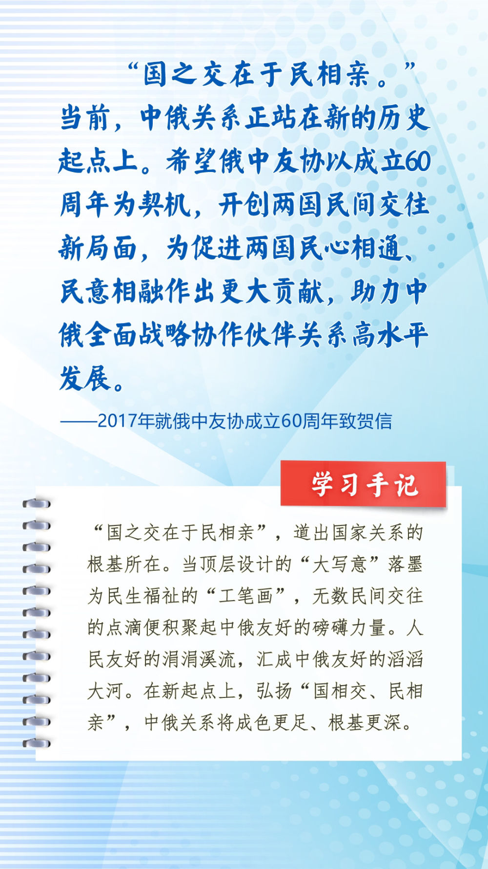 我們一起來學(xué)習(xí)品讀這些飽含哲思的論述,從中感悟新時(shí)代中俄關(guān)系在復(fù)雜的外部環(huán)境下堅(jiān)毅前行之道,感悟習(xí)近平主席作為大黨大國領(lǐng)袖、世界級(jí)領(lǐng)袖的時(shí)代擔(dān)當(dāng)與天下情懷。