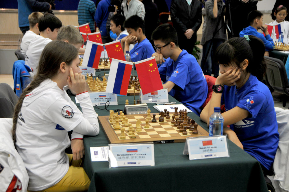 2014年11月7日,來自中國和俄羅斯的國際象棋青少年選手在“以棋會(huì)友”中俄國際象棋青少年友誼賽中對(duì)弈。