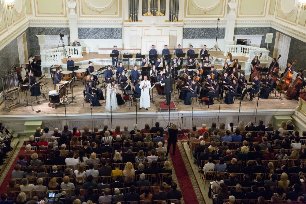 2019年11月13日,在俄羅斯圣彼得堡卡貝拉音樂廳,上海民族樂團(tuán)與安德烈耶夫國立模范民族樂團(tuán)的藝術(shù)家共同為觀眾獻(xiàn)上了一場(chǎng)名為《海上生民樂·和平頌》的精彩音樂會(huì),開啟了上海民族樂團(tuán)2019俄羅斯巡演之旅。