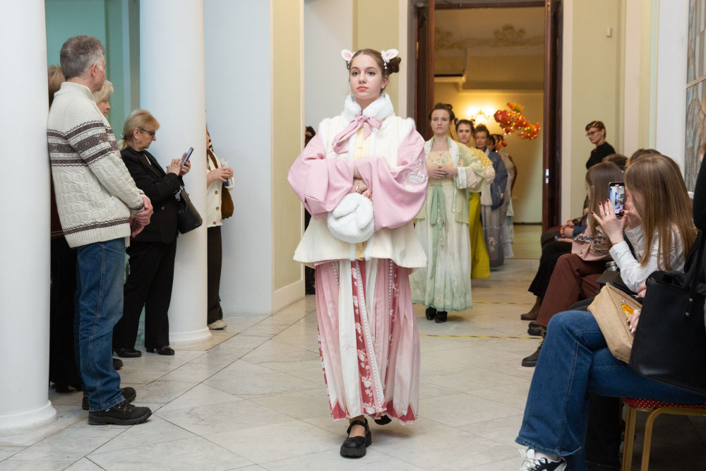 2023年1月30日,觀眾在俄羅斯圣彼得堡舉行的慶祝中國春節(jié)活動(dòng)上欣賞中式服裝秀。