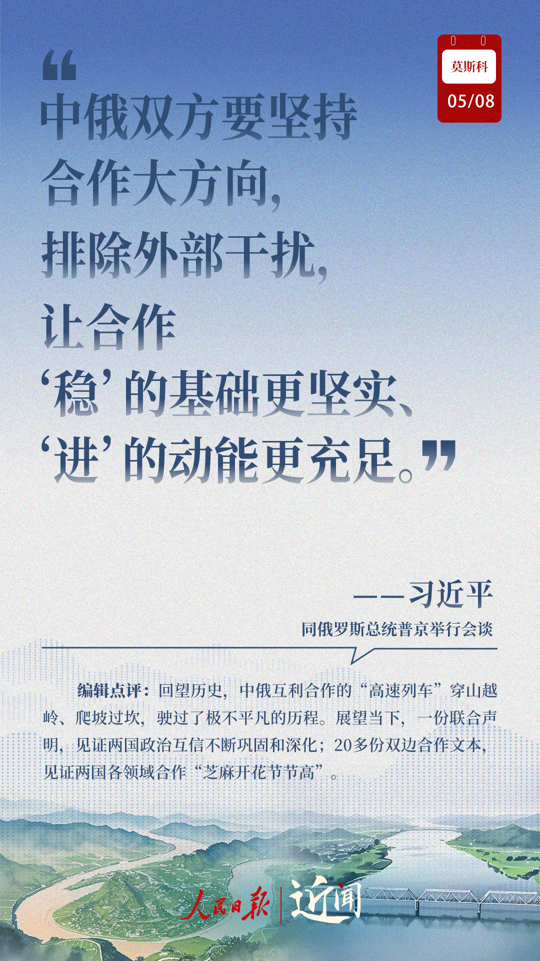 當?shù)貢r間5月8日,習近平主席出席普京總統(tǒng)舉行的歡迎儀式、小范圍會談、大范圍會談、簽字和合作文本交換儀式、共見記者、茶敘,兩國元首不同形式的長時間交流,引領(lǐng)中俄關(guān)系登高望遠。