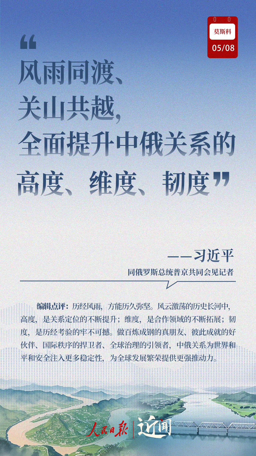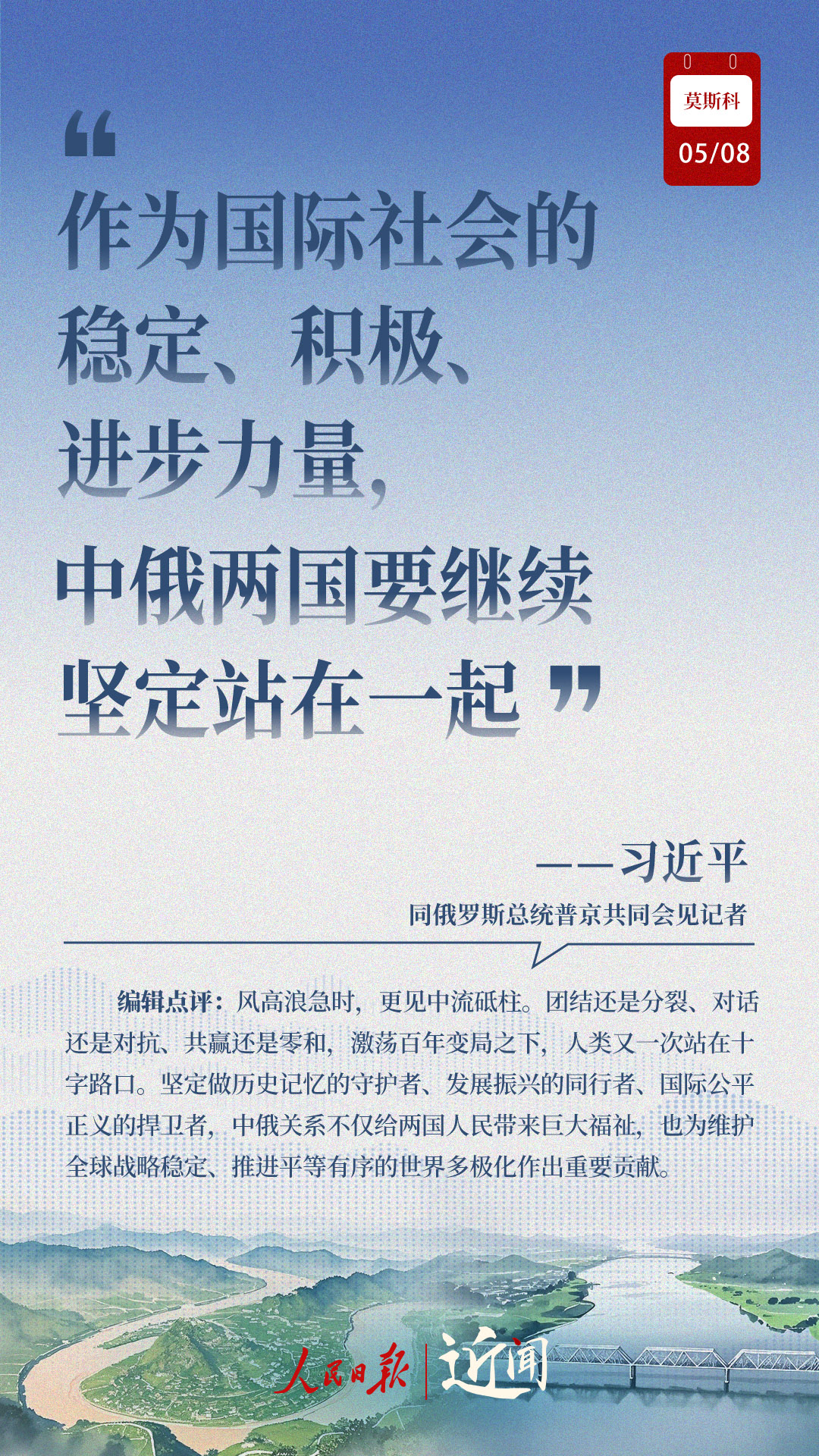 做百煉成鋼的真朋友、彼此成就的好伙伴、國際秩序的捍衛(wèi)者、全球治理的引領(lǐng)者,在紀念中國人民抗日戰(zhàn)爭、蘇聯(lián)偉大衛(wèi)國戰(zhàn)爭勝利和聯(lián)合國成立80周年之際,中俄新時代全面戰(zhàn)略協(xié)作伙伴關(guān)系進一步深化。