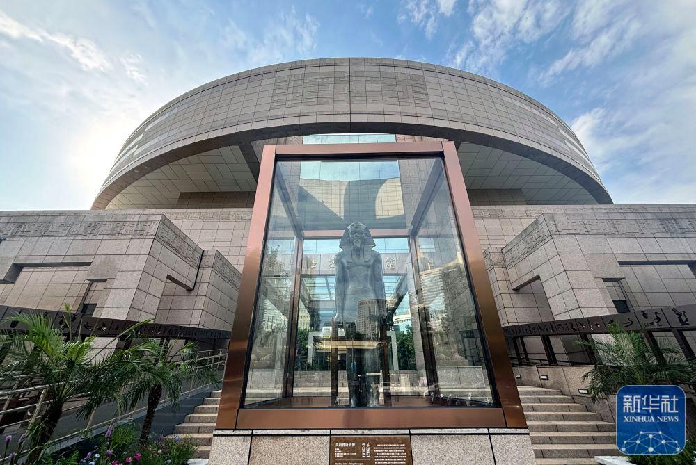 2024年7月17日在上海博物館人民廣場(chǎng)館南門拍攝的“金字塔之巔:古埃及文明大展”美內(nèi)普塔站像,這是上海博物館首次把文物展品放在室外展出。該展是近20年來(lái)埃及在境外舉辦的最大規(guī)模文物展,其中95%以上的文物是首次來(lái)到亞洲,于2024年7月19日正式向公眾開(kāi)放,將持續(xù)至2025年8月。