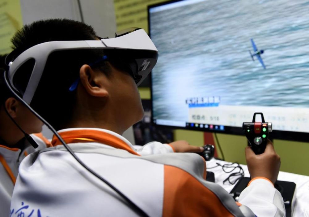 北京市八一學(xué)校的學(xué)生在北京市中小學(xué)生特色科技活動展示上體驗VR技術(shù)(2018年11月24日攝)新華社記者 羅曉光 攝。