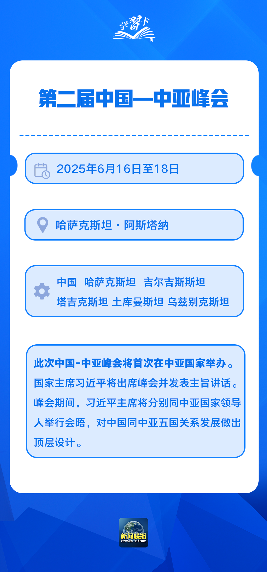 應哈薩克斯坦共和國總統(tǒng)托卡耶夫邀請,國家主席習近平將于6月16日至18日赴哈薩克斯坦阿斯塔納出席第二屆中國—中亞峰會。