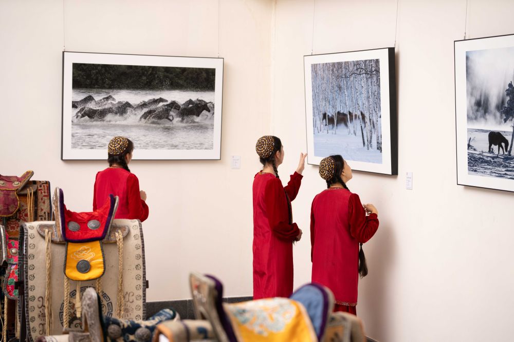 2025年6月3日,人們?cè)谕翈?kù)曼斯坦阿什哈巴德參觀“騏驥馳騁——2025中國(guó)馬文化展”。展覽從中國(guó)源遠(yuǎn)流長(zhǎng)的馬文化切入,連接中土兩國(guó)人民對(duì)于馬的審美喜好與情感寄托。