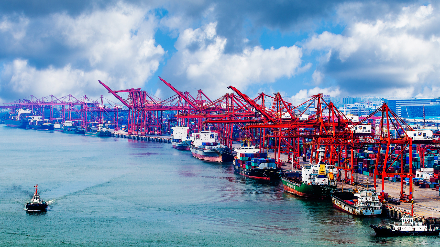 碧海藍(lán)天間,廈門港東渡港區(qū)“絲路海運(yùn)始發(fā)港”幾個(gè)大字格外醒目。