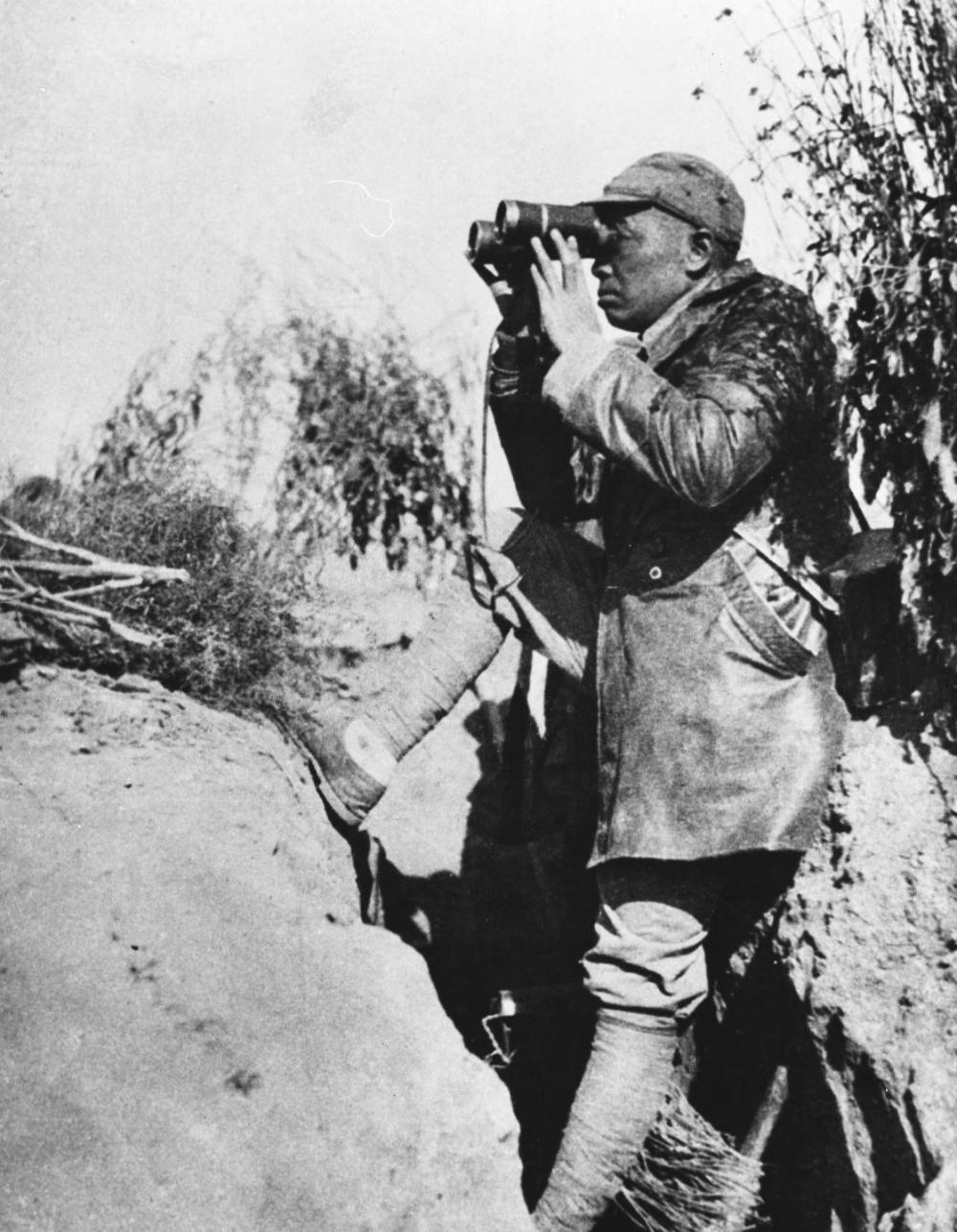 百團(tuán)大戰(zhàn),是抗日戰(zhàn)爭中八路軍在華北地區(qū)發(fā)動的一次規(guī)模最大、持續(xù)時間最長的進(jìn)攻戰(zhàn)役,先后有105個團(tuán)約20余萬人參加,僅前3個半月,就作戰(zhàn)1824次,斃傷日、偽軍2.58萬人,俘虜1.8萬余人。這是彭德懷身處前線指揮百團(tuán)大戰(zhàn)(中國照片檔案館館藏)。