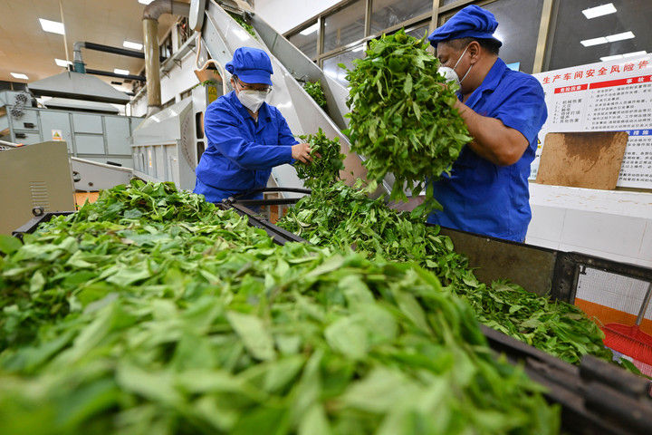 2025年6月7日,工人在海南省農墾五指山茶業(yè)集團股份有限公司保亭金江五指山分公司茶廠加工茶葉。海南大葉茶是海南省中部山區(qū)特有的茶種,在2024年被證實和發(fā)現是一種新的山茶屬物種。目前,五指山、保亭、白沙等市縣不斷擴大種植規(guī)模,將茶產業(yè)作為鞏固脫貧攻堅和推進鄉(xiāng)村振興的重要抓手,把綠葉變成百姓致富“黃金葉”。
