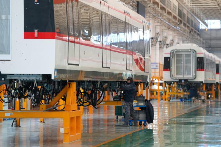 2025年2月14日,工作人員在京投裝備河北京車智能制造基地總組裝車間內工作。京投裝備河北京車智能制造基地位于河北省保定市,是貫徹京津冀協(xié)同發(fā)展戰(zhàn)略的重要項目?!氨本┭邪l(fā)+河北制造” 的模式,既發(fā)揮了北京的創(chuàng)新優(yōu)勢,又拉動了河北當地的就業(yè)和經濟,對培育首都軌道交通及其關鍵零部件等上下游產業(yè)、提升河北高端裝備制造水平發(fā)揮了推動作用。