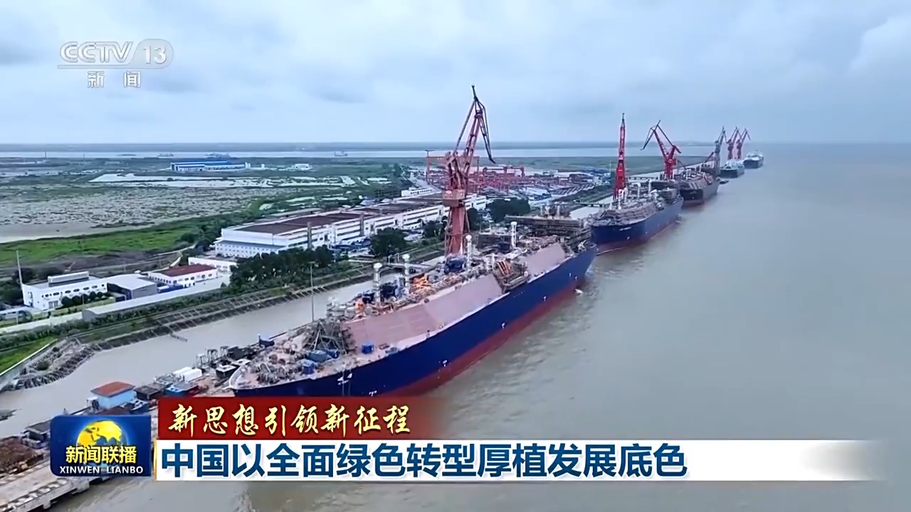 上海長興島,三大船廠生產(chǎn)線晝夜不息。今天,“綠色船舶中國造”已經(jīng)成為了船舶市場上的新趨勢,中國新接綠色動力船舶訂單占國際市場份額從2021年的31.5%增長至2024年的78.5%。