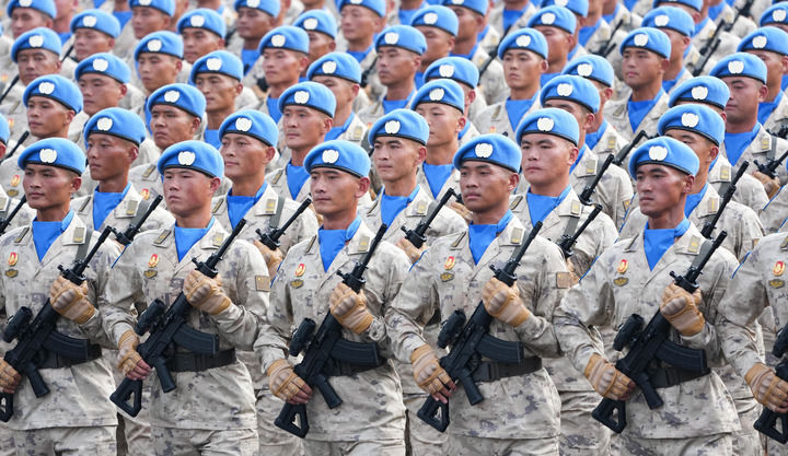 2025年9月3日,紀(jì)念中國人民抗日戰(zhàn)爭暨世界反法西斯戰(zhàn)爭勝利80周年大會在北京隆重舉行。這是維和部隊方隊接受檢閱。