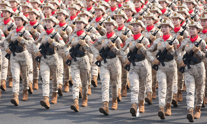 9月3日,天安門廣場。身著蛙式作訓服、手握鋼槍的女民兵,身姿挺拔、英姿颯爽。她們來自當年的主要抗日根據(jù)地。這是民兵首次亮相以紀念抗戰(zhàn)為主題的閱兵活動。