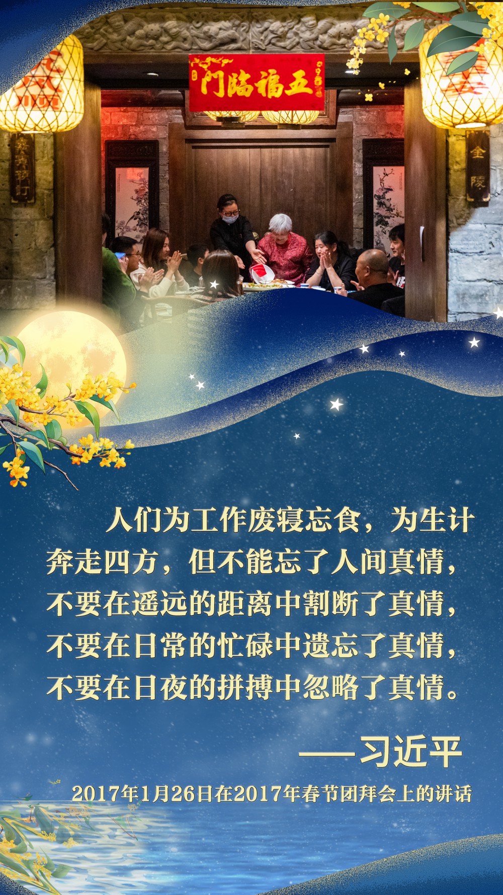 江山萬重,皓月千里。刻在中華兒女骨血里的家國情懷,讓每一次團(tuán)聚都成為對美好生活的禮贊,讓每一份祝福都匯聚成民族奮進(jìn)的磅礴力量。