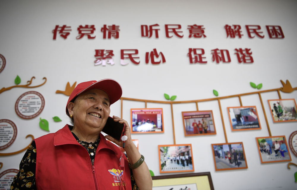 2005年,寧夏吳忠市回族婦女王蘭花從社區(qū)居委會(huì)主任崗位退休后,與6名老同事成立了“王蘭花熱心小組”。她帶領(lǐng)團(tuán)隊(duì)二十年如一日?qǐng)?jiān)持志愿服務(wù),每天奔走在社區(qū)各個(gè)角落,照顧空巢老人、留守兒童,化解矛盾糾紛,幫助解決社區(qū)居民的操心事、煩心事、揪心事,用無(wú)私奉獻(xiàn)溫暖著每一個(gè)人的心田,成為社區(qū)志愿服務(wù)“領(lǐng)頭羊”,吸引越來(lái)越多的人加入志愿服務(wù)隊(duì)伍。這是2021年6月16日,王蘭花在社區(qū)工作站與居民通電話(huà)。