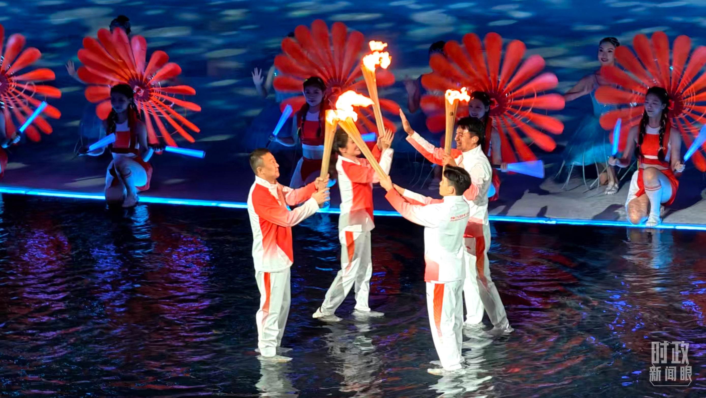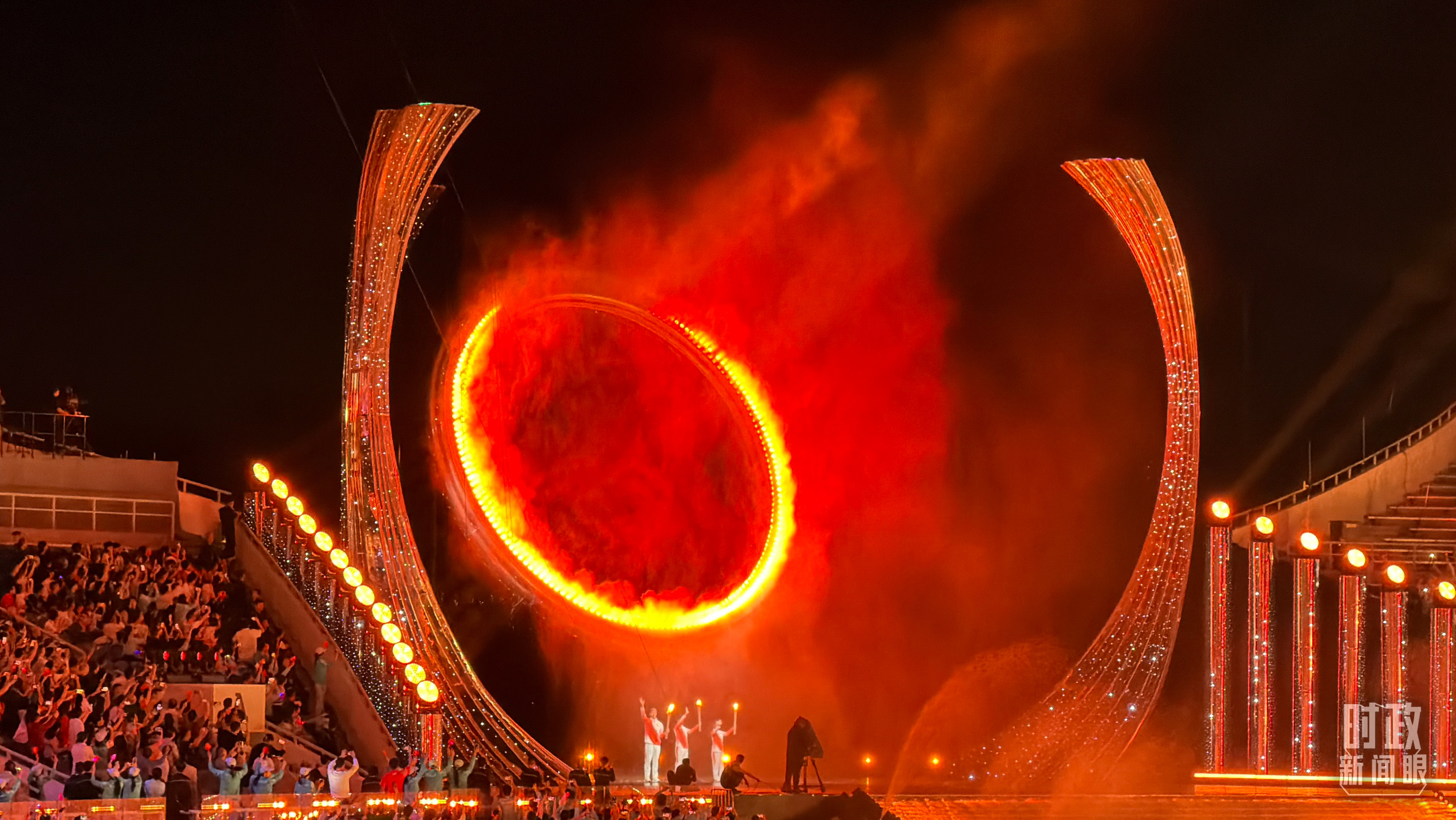 第十五屆全運會主火炬點燃環(huán)節(jié)。(總臺央視記者范一鳴、蔣碩拍攝)