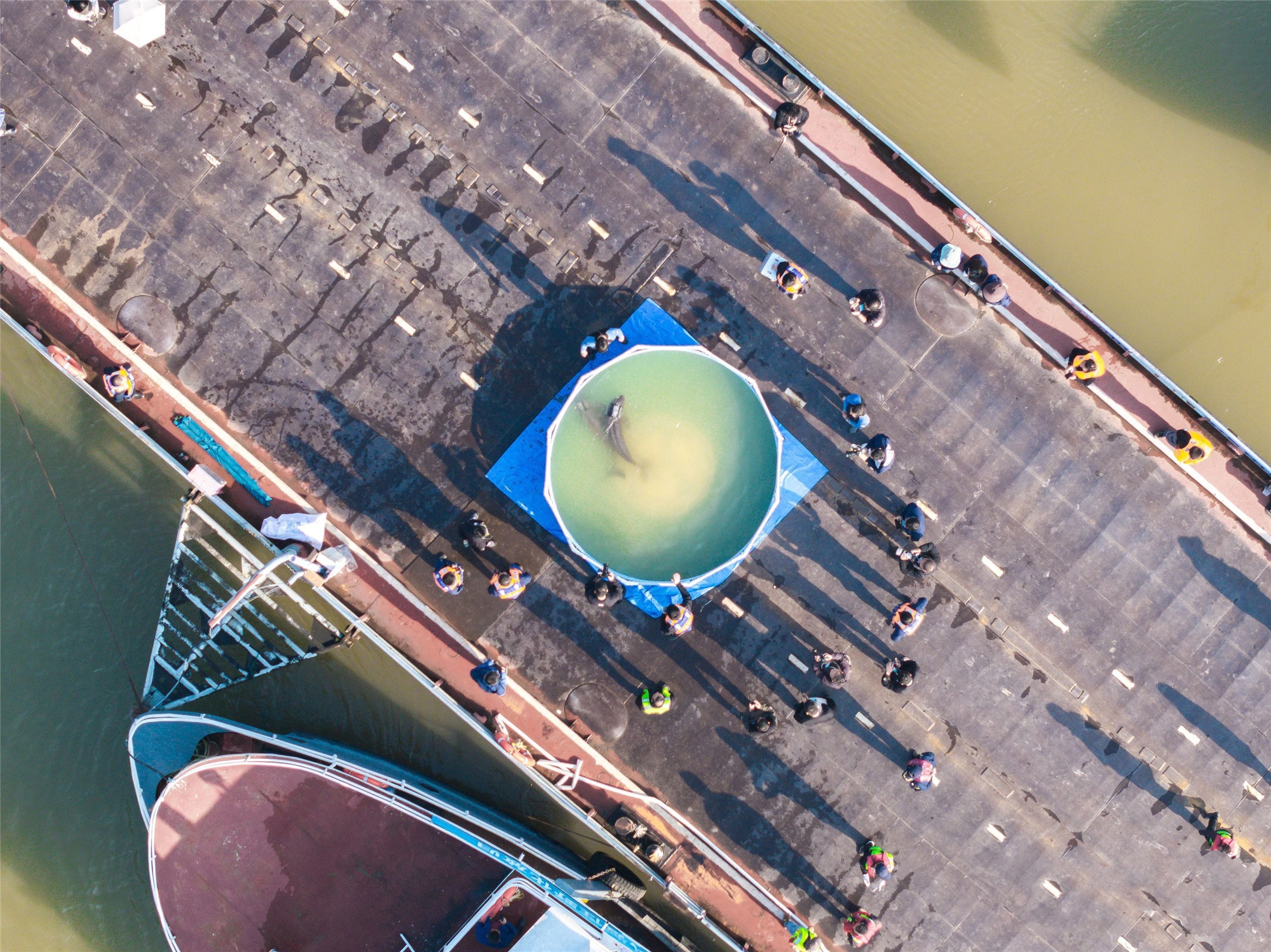 11月14日,在湖北洪湖市長江洪湖段,兩頭經(jīng)過野化訓(xùn)練的長江江豚被放歸長江干流,中科院水生所研究人員正實時監(jiān)測。這已經(jīng)是我國第二次開展這樣的野化放歸行動。