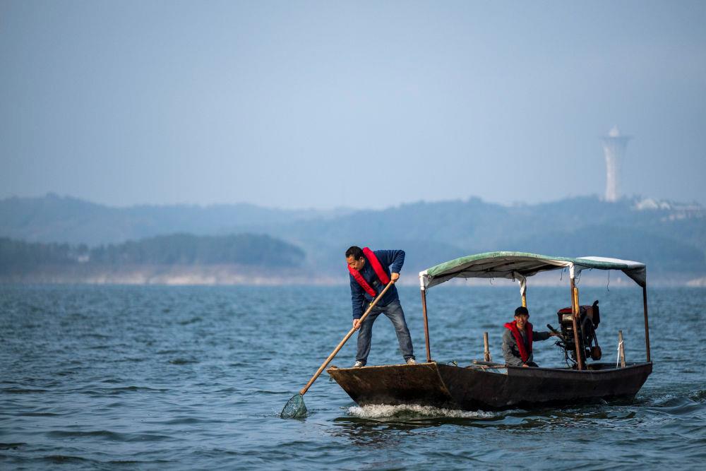 2024年10月28日,湖北十堰丹江口清漂隊隊員在庫區(qū)進行清漂作業(yè)。2023年,丹江口成立“小水滴”守水護水志愿服務隊,越來越多人加入守水護水行列 。
