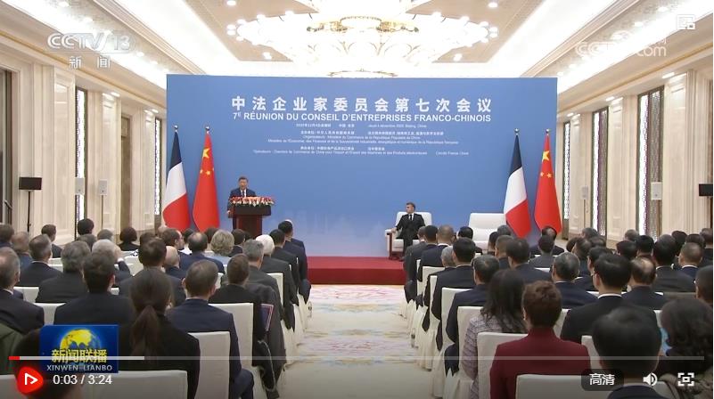 12月4日中午,國家主席習(xí)近平在北京同法國總統(tǒng)馬克龍共同出席中法企業(yè)家委員會(huì)第七次會(huì)議閉幕式并致辭。