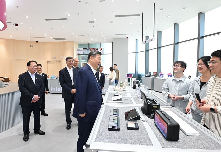 2025年4月29日,習(xí)近平總書記在位于上海徐匯區(qū)的“模速空間”大模型創(chuàng)新生態(tài)社區(qū)人工智能產(chǎn)品體驗(yàn)店考察。