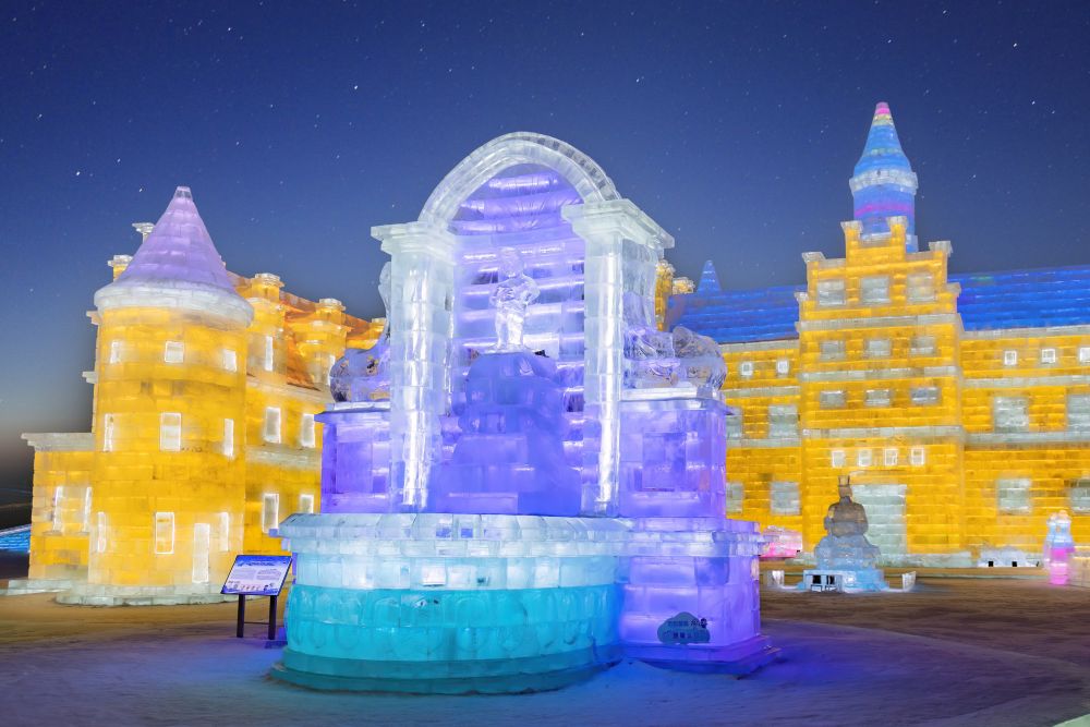 在哈爾濱冰雪大世界,來(lái)自世界各地的游客在“冰雪王國(guó)”感受冬日限定快樂(lè)。
