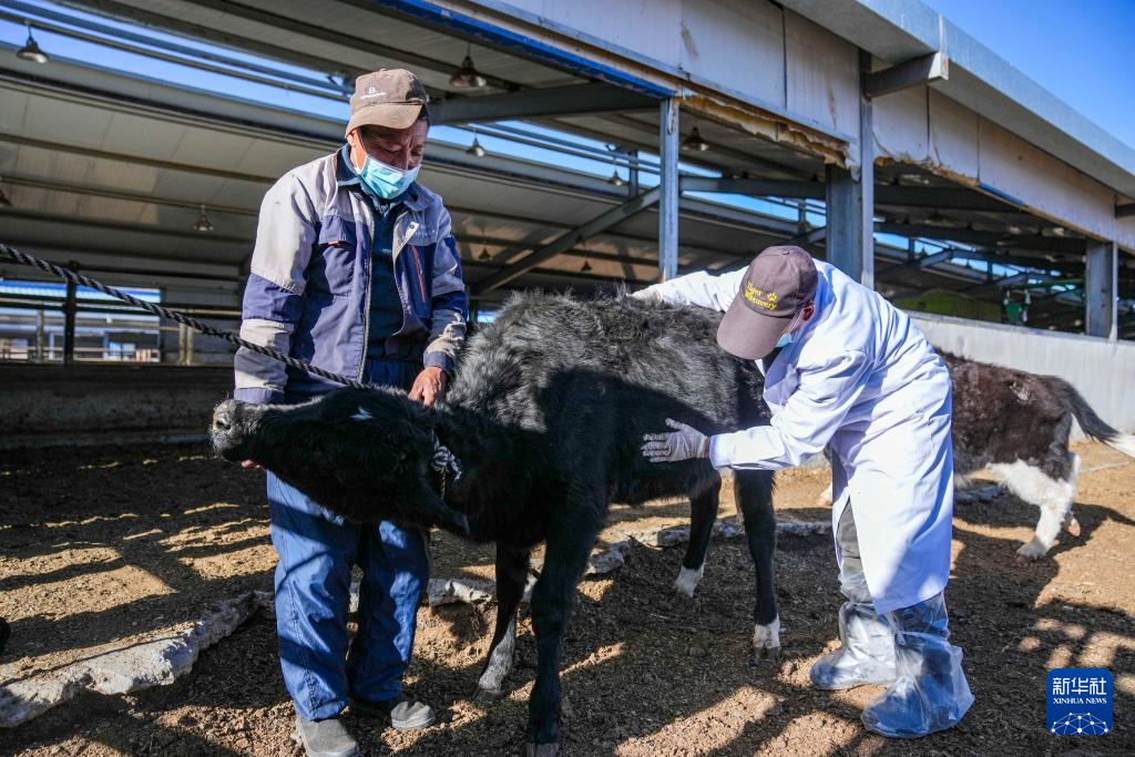 12月3日,西藏自治區(qū)動(dòng)物疫病預(yù)防控制中心(區(qū)畜牧總站)曲水實(shí)驗(yàn)站的工作人員在檢查克隆樟木牛母犢的眼瞼狀況。新華社記者 丁增尼達(dá) 攝