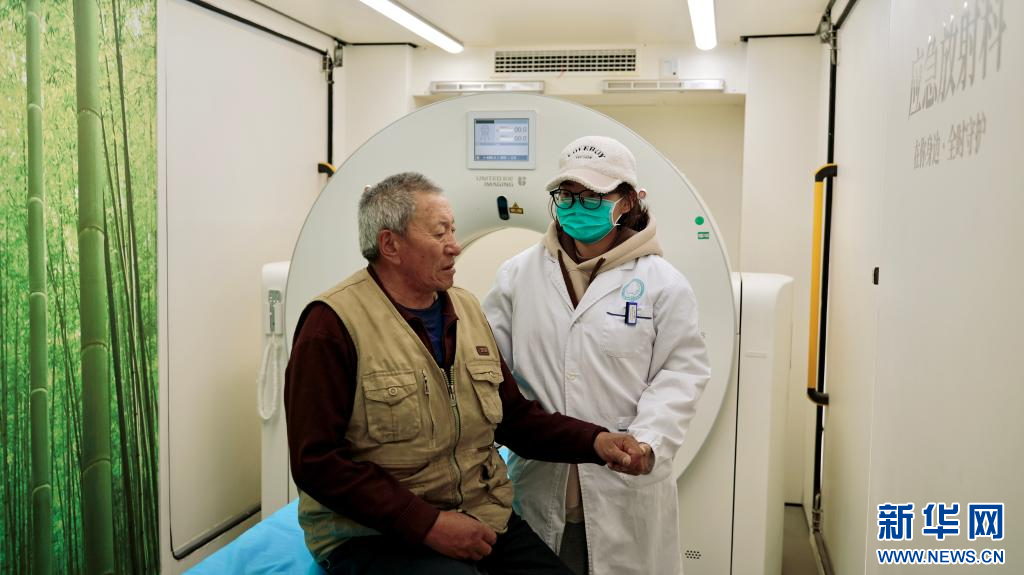 12月3日,醫(yī)護(hù)人員在雅礱物交會義診現(xiàn)場協(xié)助群眾進(jìn)行CT檢查。周昱龍 攝