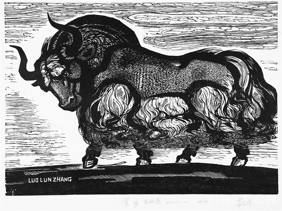 如果非要說我在版畫技法上有什么創(chuàng)新,參照西藏匠人刻經(jīng)文,在石頭上刻出來然后印出來也許就算。這不是一般石版畫概念,那叫石印,平版印刷;我這是凹版印刷??唐饋砗苜M勁,我也不管費不費勁。我有一批這樣的石刻作品。綜合版作品手法較多,我通常分別在石板和木板上刻,然后套起來印。如果搞學(xué)術(shù)交流,也許值得一談。至于說到創(chuàng)新,第一我不認(rèn)為我有什么創(chuàng)新,第二我不認(rèn)為在藝術(shù)上、在美術(shù)上能夠輕易談創(chuàng)新這個詞。還有第三個觀點:不需要創(chuàng)新。很簡單,你先把傳統(tǒng)學(xué)到手再說。既是傳統(tǒng),就有它的存在理由,否則早就夭折了,還傳什么統(tǒng)呢?傳,而且統(tǒng)?。〗y(tǒng)是什么意思?基調(diào)是它統(tǒng)一起來的。先把傳統(tǒng)學(xué)到手,爐火純青了,神來之筆出現(xiàn)了,才有可能有所創(chuàng)造?;A(chǔ)是重要的。