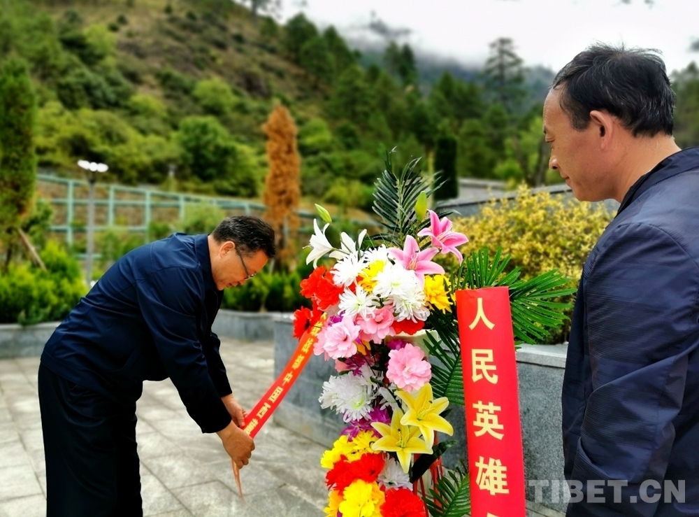 中國西藏網(wǎng)訊 “雪域邊陲埋忠骨、烈士英靈照千秋?!?月22日上午,中國西藏信息中心主任公保帶領(lǐng)記者來到西藏自治區(qū)林芝市察隅縣境內(nèi)的英雄坡紀(jì)念園,向革命烈士敬獻(xiàn)花圈,深切緬懷革命先烈。