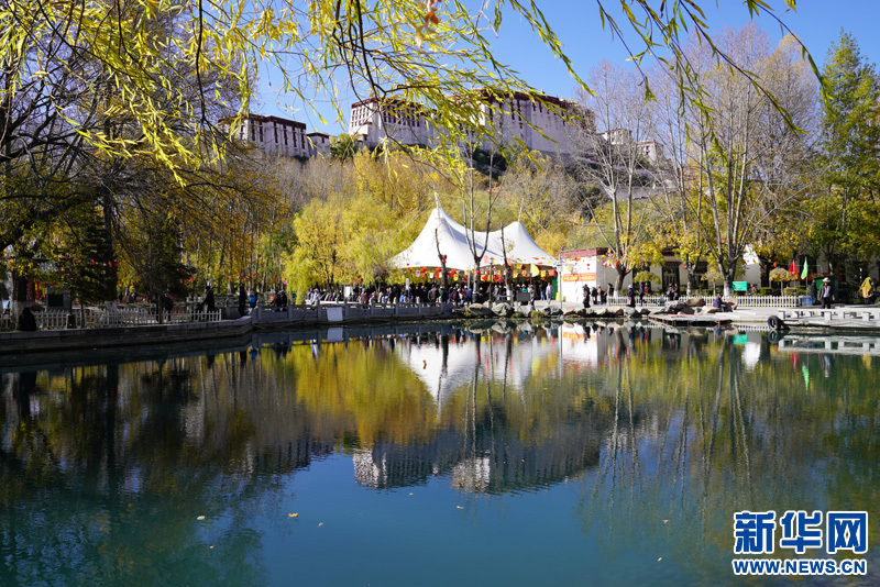 金秋的宗角祿康公園景致別有一番滋味:藍(lán)天、碧水與遠(yuǎn)處的雪山交相輝映,一切仿佛是畫家手中的調(diào)色盤,美的恰到好處。
