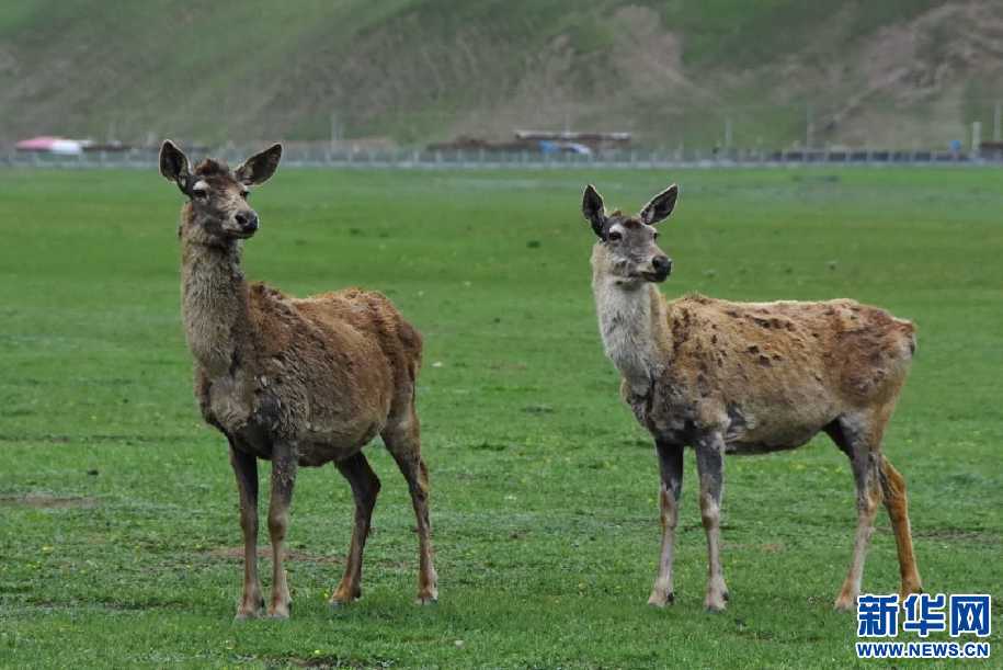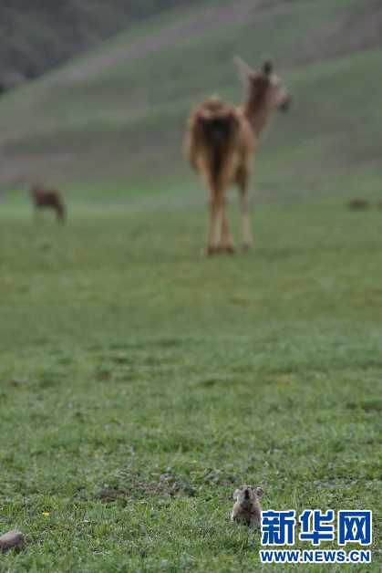 保護(hù)區(qū)內(nèi)馬鹿和兔鼠和諧相處(6月24日攝)。新華網(wǎng) 張宸 攝
