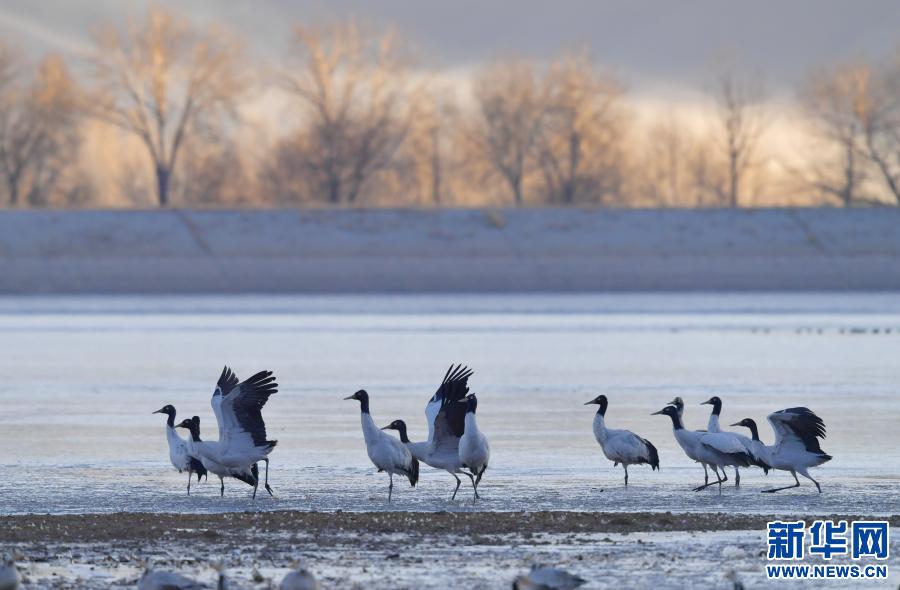 冬日,大批黑頸鶴在西藏拉薩市林周縣境內(nèi)棲息、覓食。 林周縣黑頸鶴自然保護區(qū)建立于1993年,2003年被設(shè)立為國家級自然保護區(qū),是雅魯藏布江中游自然保護區(qū)的核心部分,在每年的11月底至12月初,這里便會迎來成群的黑頸鶴過冬。