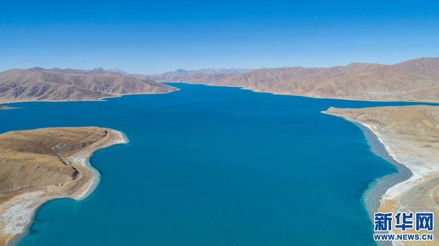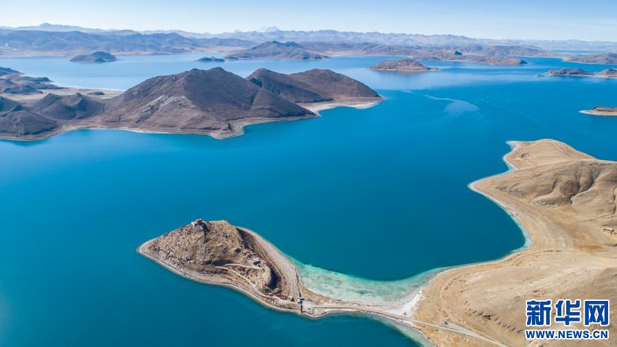 這是1月10日拍攝的羊卓雍錯(cuò)景色(無(wú)人機(jī)照片)。新華社記者 孫非 攝