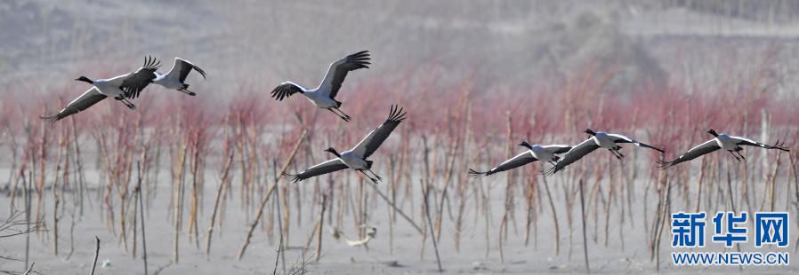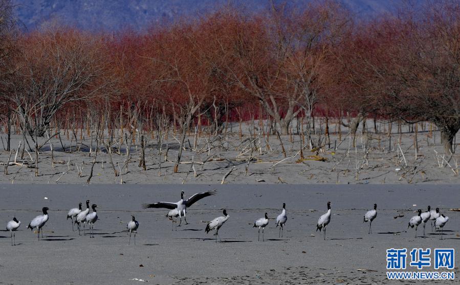 冬季,成群結(jié)隊的黑頸鶴遷徙到西藏林芝市,雅魯藏布江及江畔的農(nóng)田成了它們越冬的樂園。