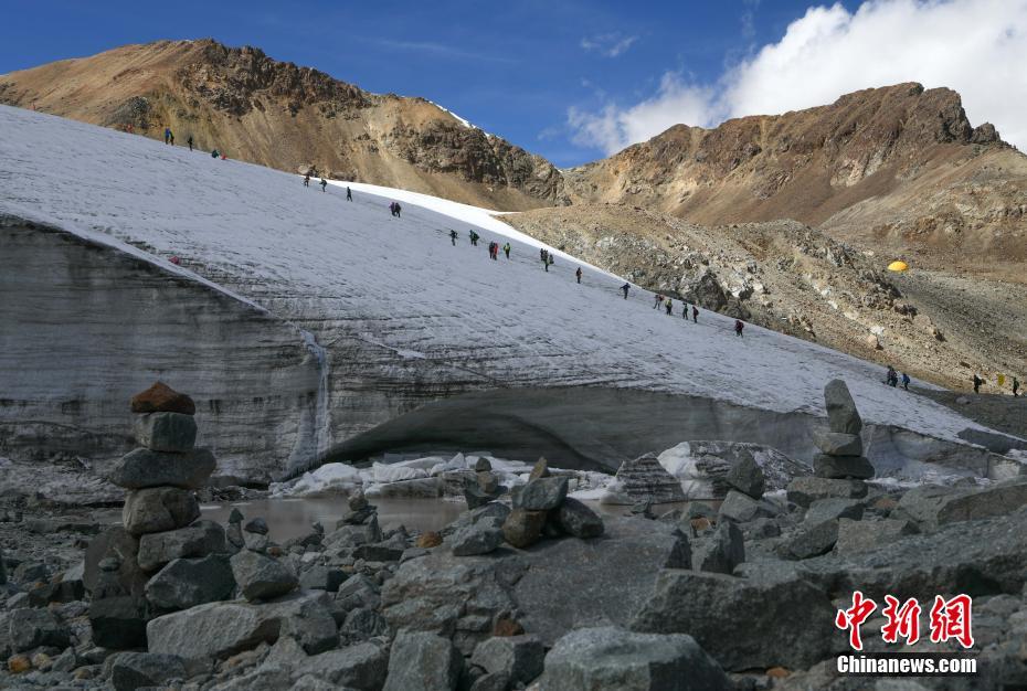 西藏拉薩河谷1號(hào)冰川(廓瓊崗日冰川)景區(qū)將與2021年4月正式全面開(kāi)放,洛堆峰雪山攀登項(xiàng)目也將正式啟動(dòng)。資料圖為登山愛(ài)好者攀登洛堆峰。(無(wú)人機(jī)拍攝)中新社發(fā) 貢嘎來(lái)松 攝