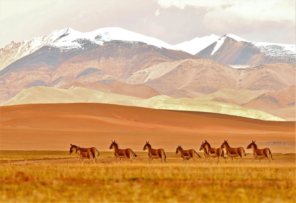 羌塘國家級(jí)自然保護(hù)區(qū)內(nèi)飛奔的藏野驢(2017年9月19日攝)。新華社記者 張汝鋒 攝