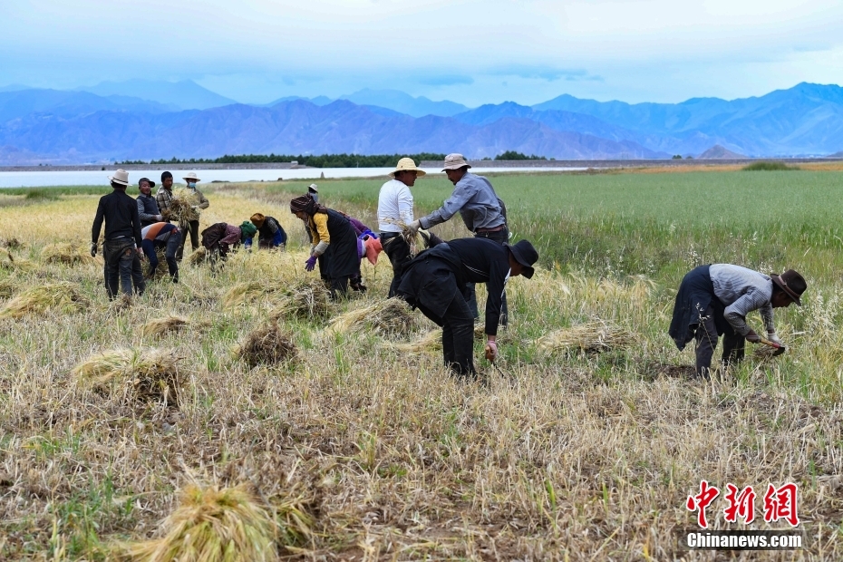 9月8日,西藏自治區(qū)拉薩市林周縣春堆鄉(xiāng)的農(nóng)民在搶收青稞。金秋時(shí)節(jié),拉薩河谷一帶青稞成熟,農(nóng)民在青稞田忙碌,一片繁忙景象。中新社記者 貢嘎來松 攝