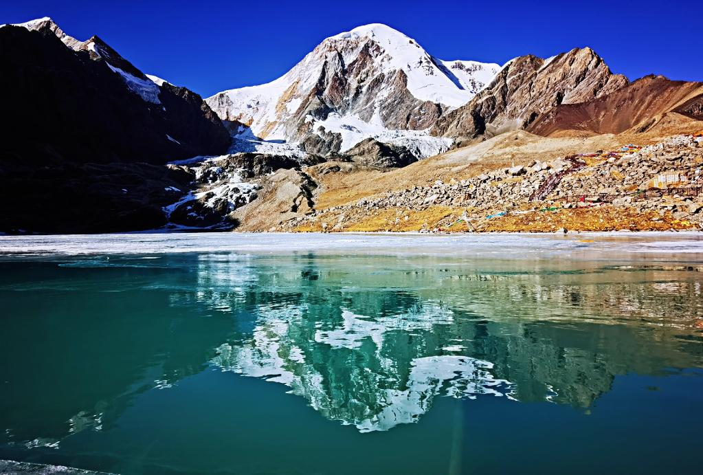 2022年3月27日拍攝的窮母崗日峰腳下的冰湖。(手機照片,新華社記者 沈虹冰 攝)