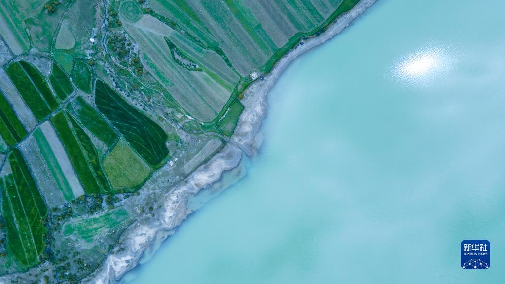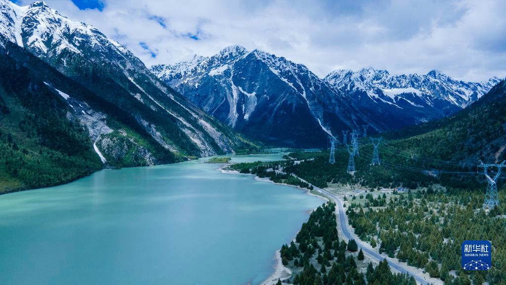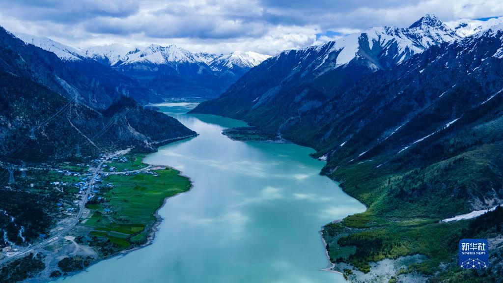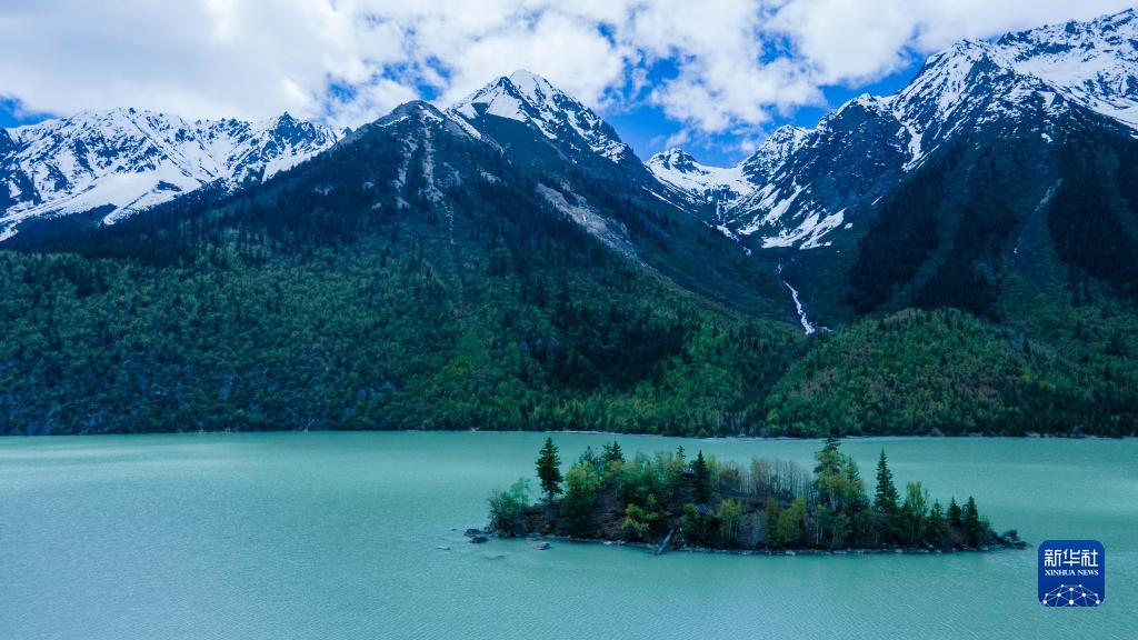 這是5月30日拍攝的然烏湖風光(無人機照片)。新華社記者 周荻瀟 攝