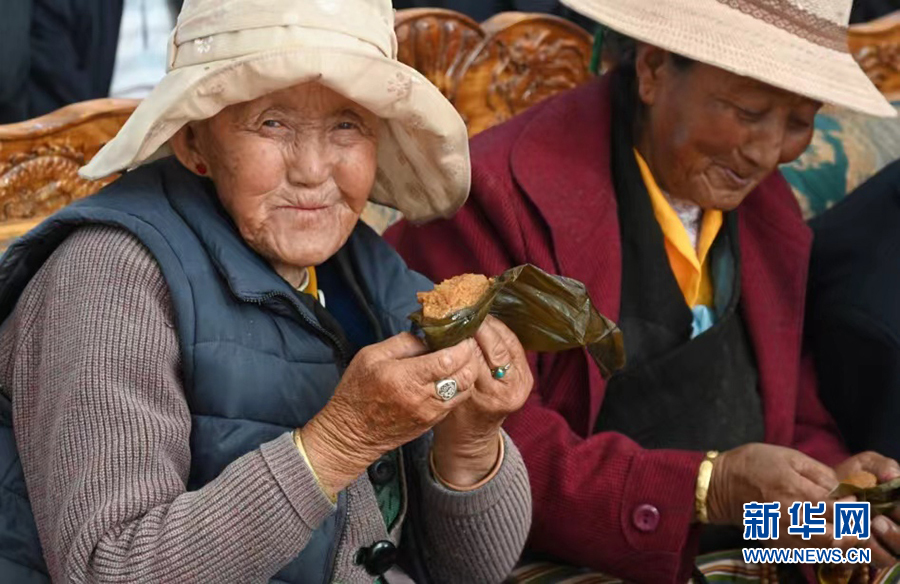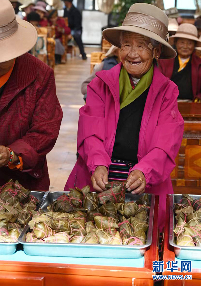 6月3日,西藏山南市集中供養(yǎng)服務(wù)中心的老人們開心地領(lǐng)到千里送來(lái)的粽子。新華網(wǎng) 王雷 攝