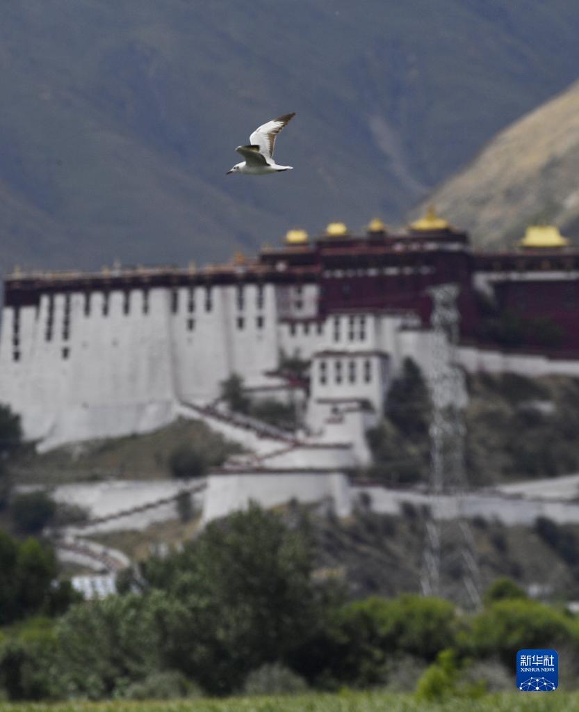 海鷗在拉魯濕地上空盤旋(6月21日攝)。新華社記者 張汝鋒 攝