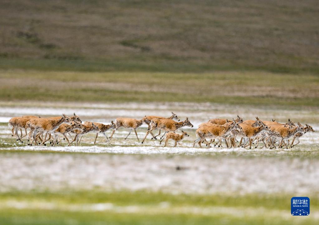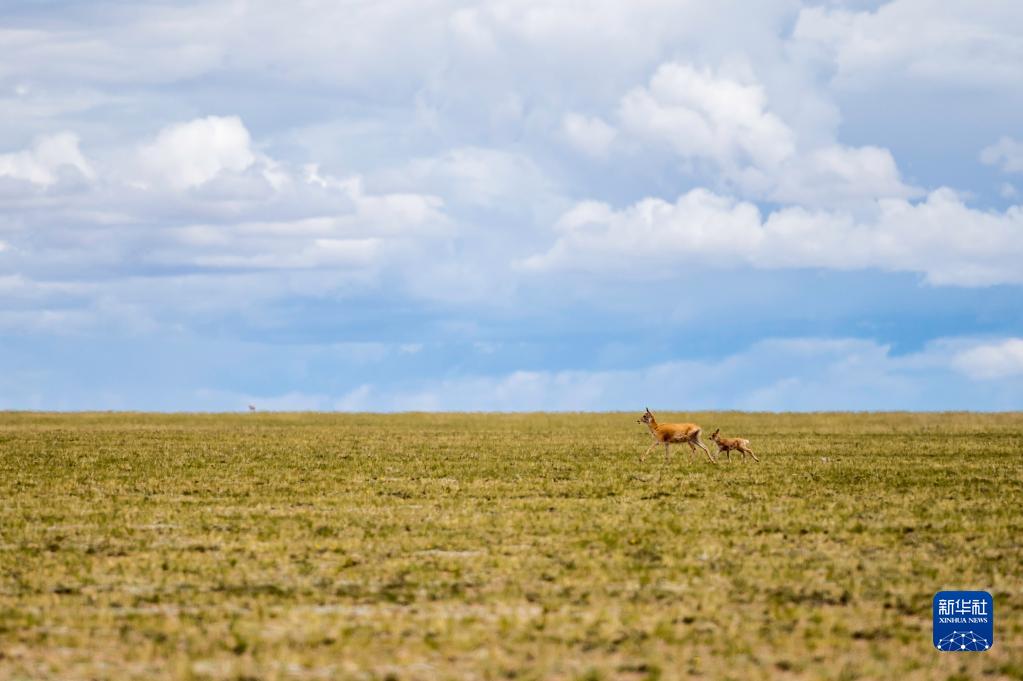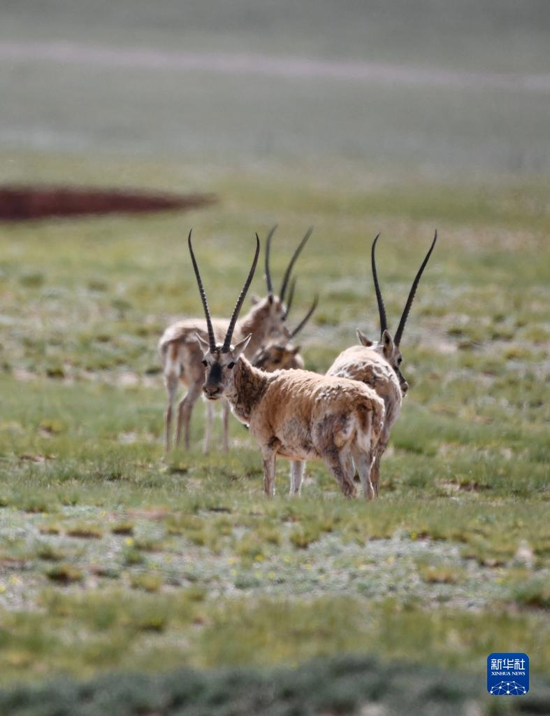 這是在羌塘國家級自然保護區(qū)內(nèi)拍攝的藏羚羊(7月11日攝)。新華社記者 周荻瀟 攝